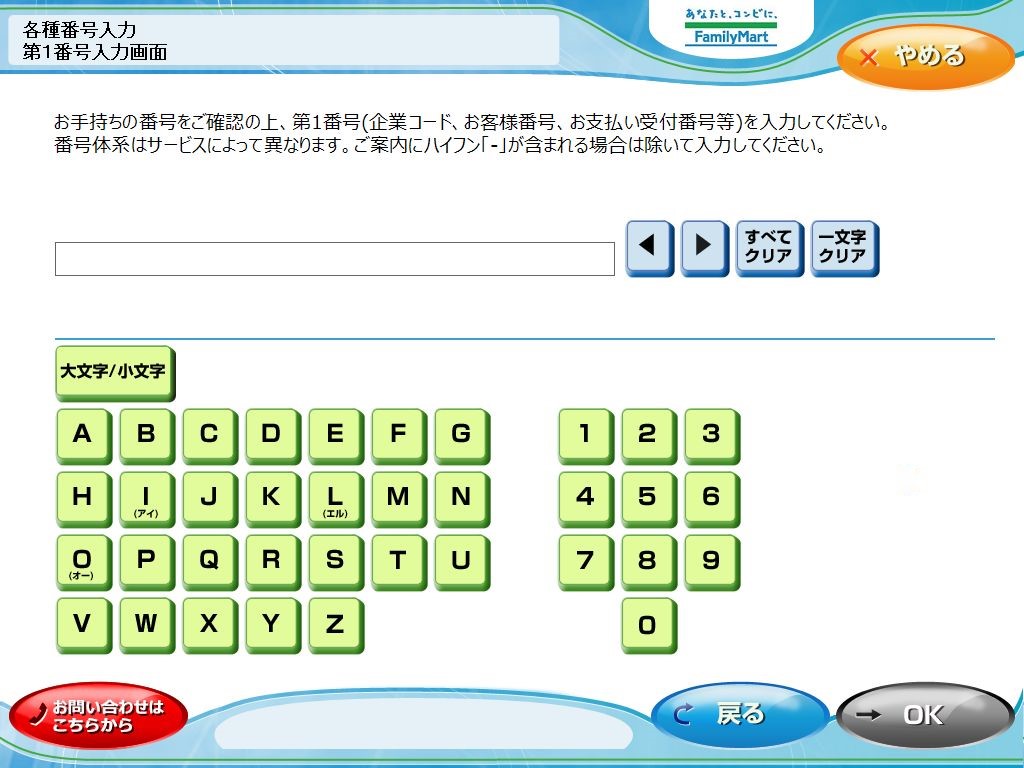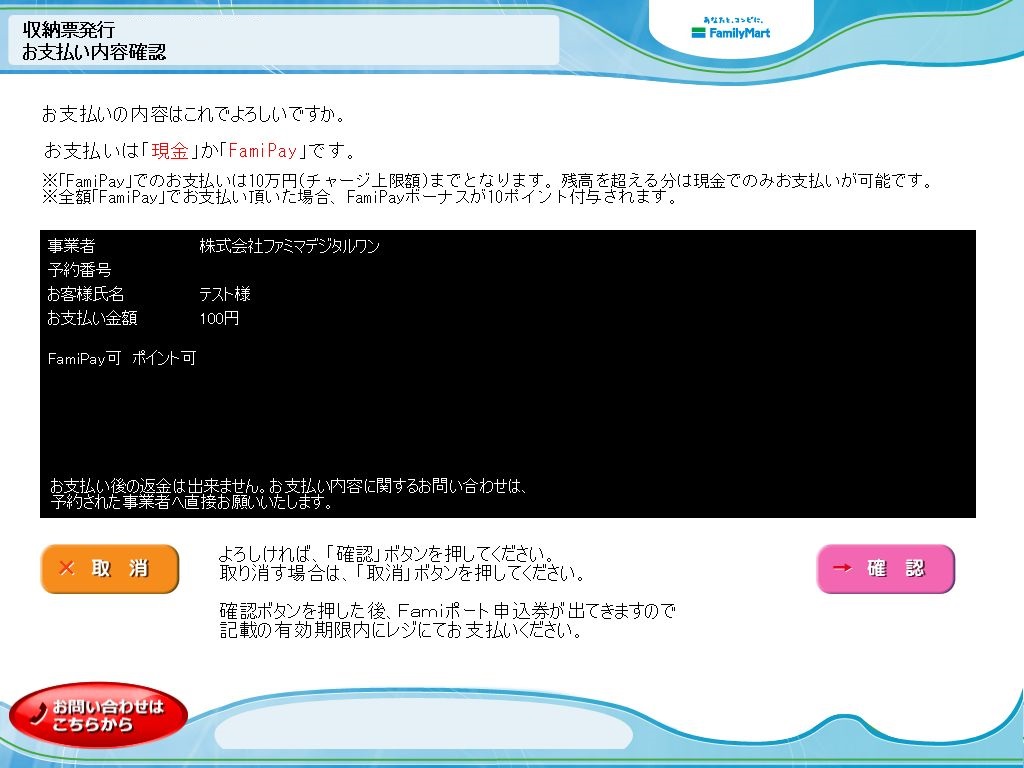 申込券を発行してから30分以内にレジにて現金でお支払いください。 - 申込券発行の際、お客様番号と確認番号が必要です。
