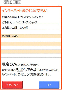 3.表示される内容を確認して、OKボタンを押し現金でお支払いください。